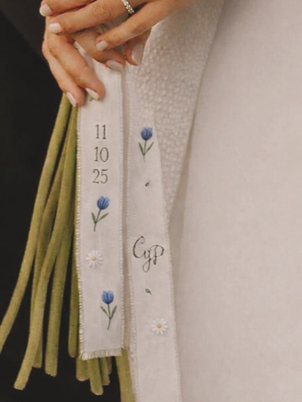 Nuestras cintas para ramo son el detalle perfecto para personalizar tu boda. Puedes elegir el color de tu cinta, la medida y si el diseño lo quieres bordado o en acuarela:
